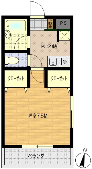 間取内容 | 洋室7.5畳 K2畳 |